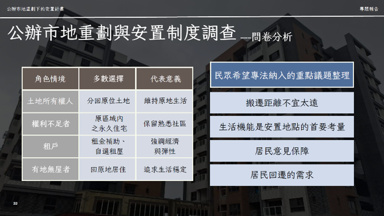 專題名稱:公辦市地重劃下的安置計畫研擬 ——《公辦市地重劃安置補償及救濟條例》