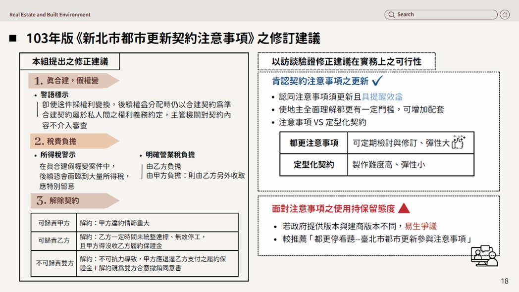 專題名稱:探討都市更新契約爭議預防機制:建構輔導機制之執行計畫——以新北市為例
